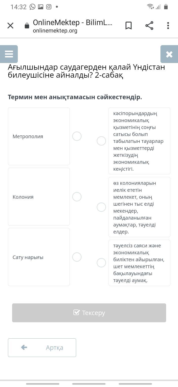 Ағылшындар саудагерден қалай Үндістан билеушісіне айналды? 2-сабақ Термин мен анықтамасын сәйкестендір.