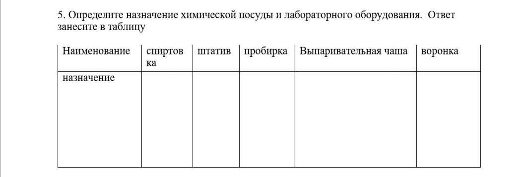 Определите назначение химической посуды и лабораторного оборудования. Ответ занесите в таблицу