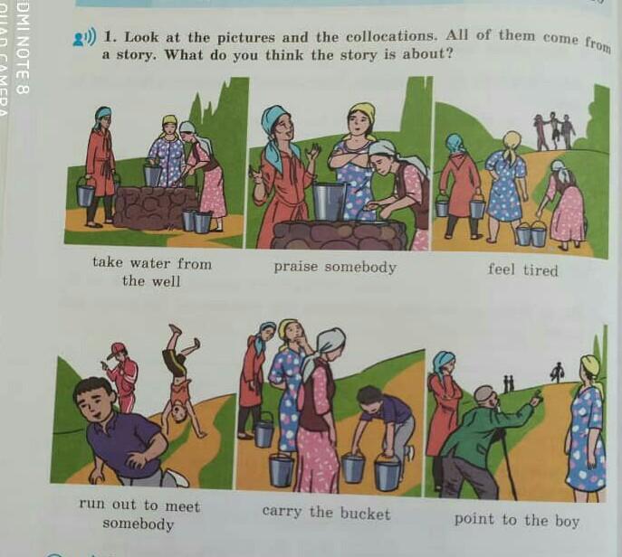 Объяснение: at first picture three mums taking water from the well. At second they speak about them. At third they see their sons. At fourth picture we can see that one is perfect acrobat second is looking at his phone and third is running. At fifth picture third son helps his mother to carry bucket when other don't. At sixth picture at third son shows grandpa.