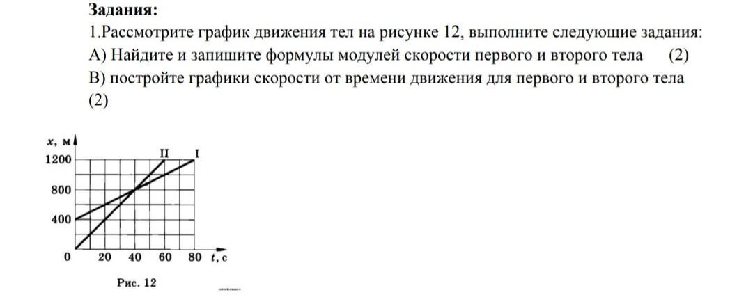 Рассмотрим график движения тел на рисунке 12, выполните следующие задания.