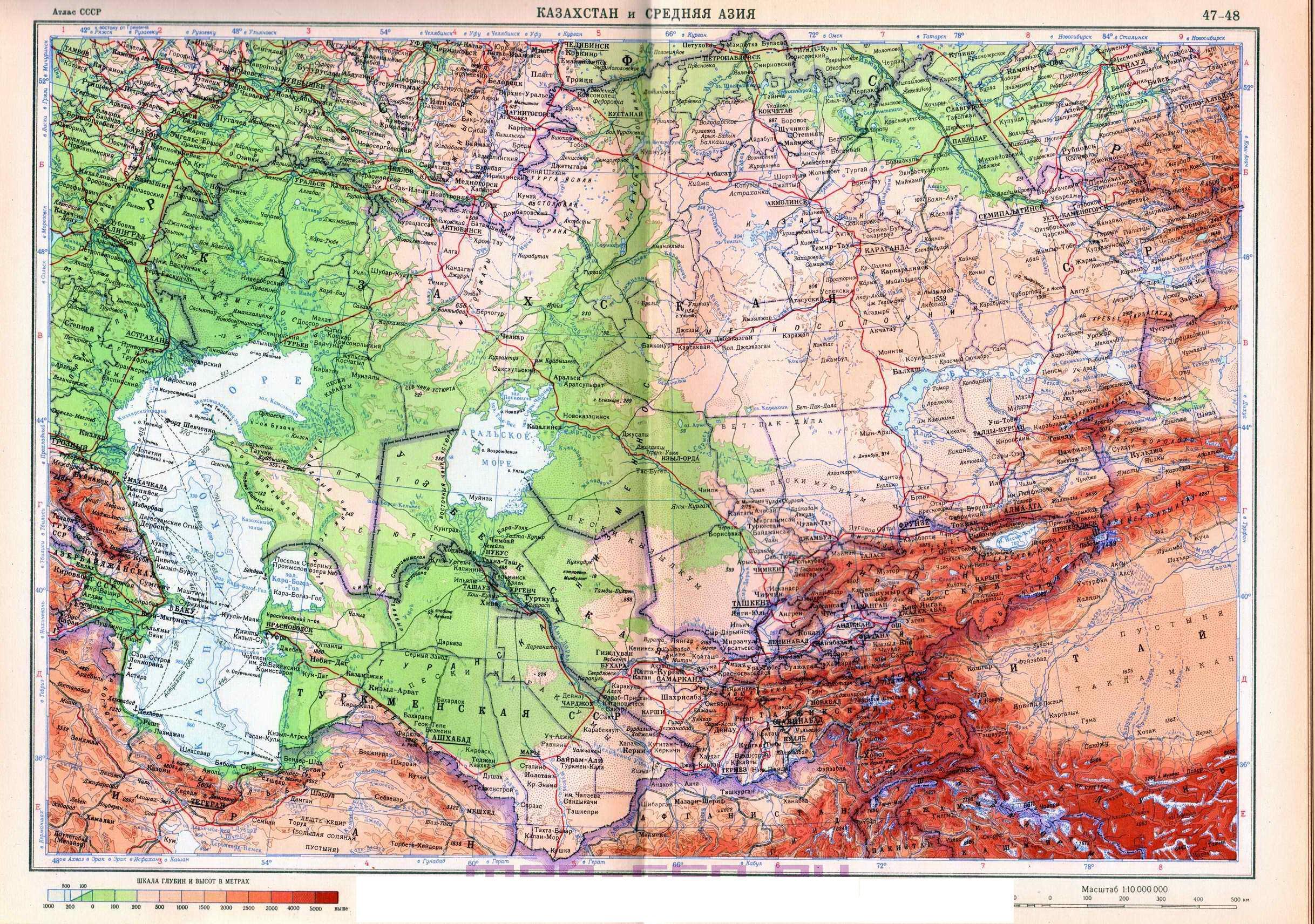 в географическом атласе для 7 класса найдите физическую карту Средней азии и скажите каким цветом изображены горы возвышенности и низменности