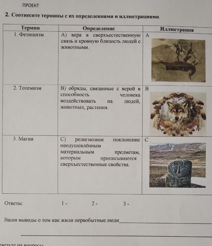 Соотнесите термины с их определениями и иллюстрациями определения вера в сверхъестественную связи с кровной близость людей с животными обряды связанные с Верой в способность человека воздействовать на людей животных Растения и легированные про неё неодушевлённым материальным предметом которым приписываются сверхъестественные свойства