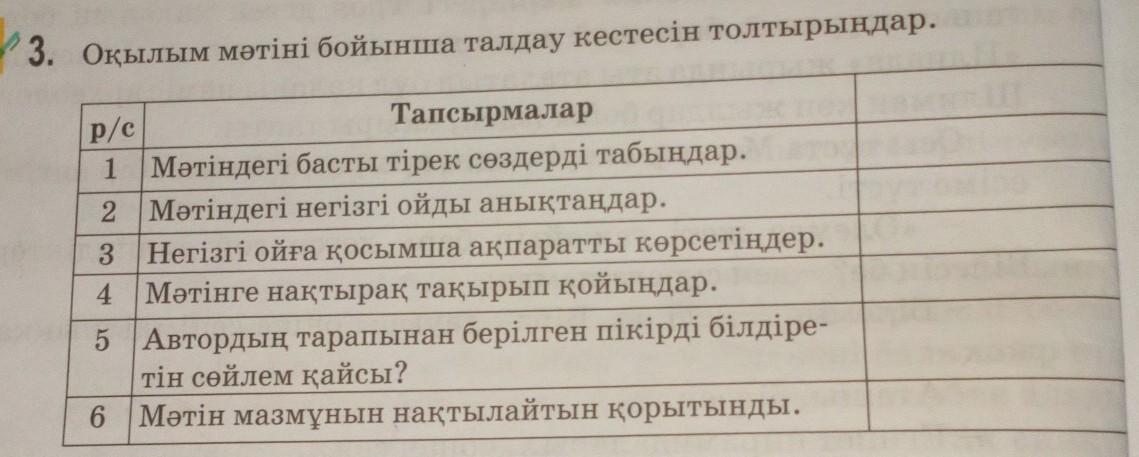 3. Оқылым мәтіні бойынша талдау кестесін толтырыңдар.