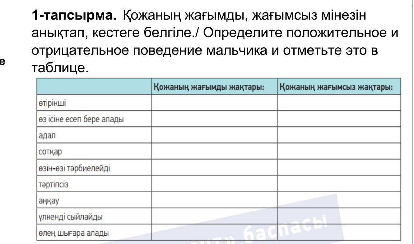 Қожаның жағымды жақтары 2,3,5 делайте +. Қожанын жағымсыз жақтары 1,4,6 + и всё