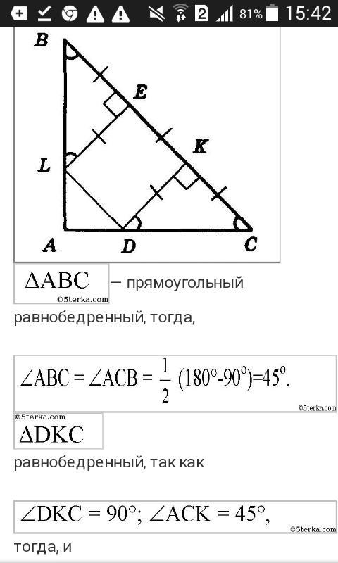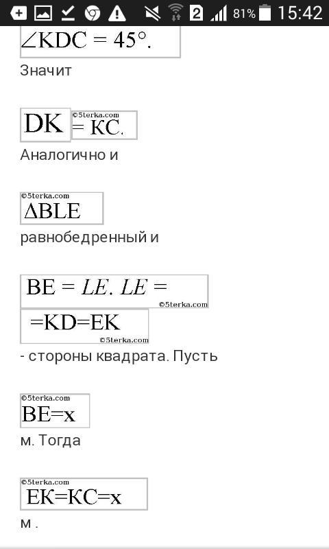 в равнобедренный прямоугольник треугольник вписан квадрат так что две его вершины лежат на гипотенузе а две другие на катетах найдите сторону квадрата если гипотенуза равна 21см
