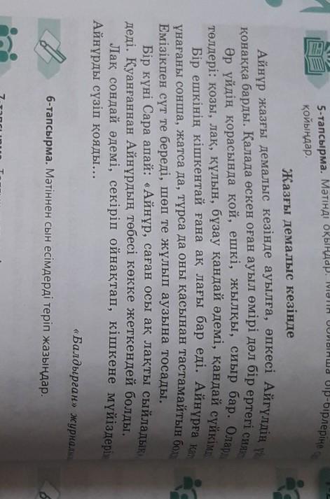 Мәтіннен сын есімдерді теріп жазыңдар жазғы демалыс кезінде