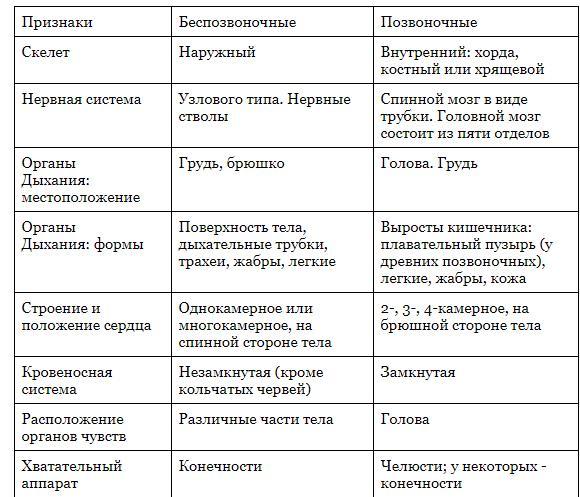 Сравните беспозвоночных и позвоночных животных и опишите их отличительные признаки