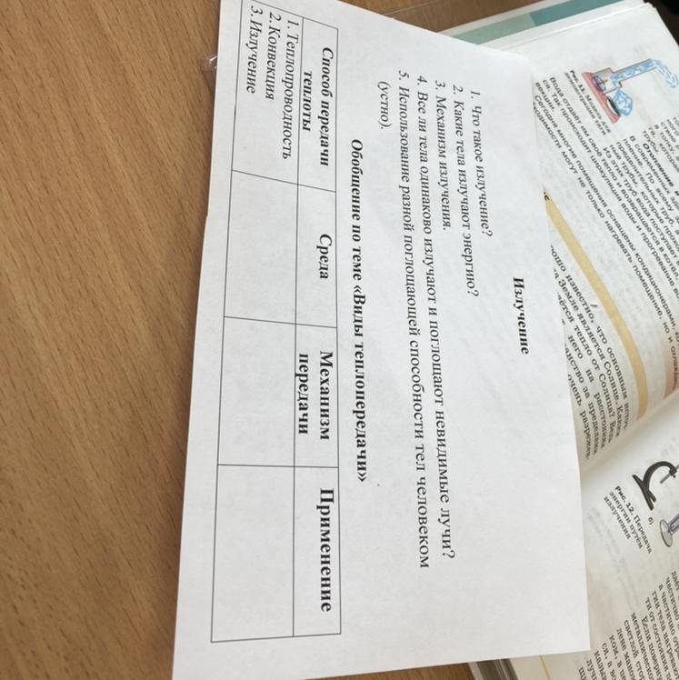 Ответ: применение:Излучение - греемся у костра, тепло рядом с печкой, Солнце. Теплопроводность - сковородка, кран в ванной. Конвекция - форточки, батареи