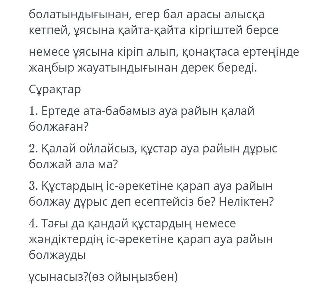 3. Құстардың іс-әрекетіне қарап ауа райын болжау дұрыс деп есептейсіз бе? Неліктен?