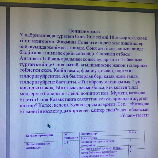 1. Мәтіннің не туралы екенін анықтаңыз.