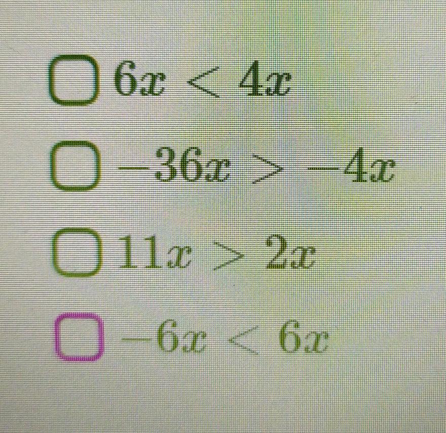 Значит, если нам нужно найти отрицательный x, надо найти такое неравенство, где x с БОЛЬШИМ коэффициентом почему то оказывается меньше, чем x с МЕНЬШИМ коэффициентом. Если же коэффициенты сами отрицательные, то ситуация переворачивается (то есть при отрицательном x, больший коэффициент дает больший результат)