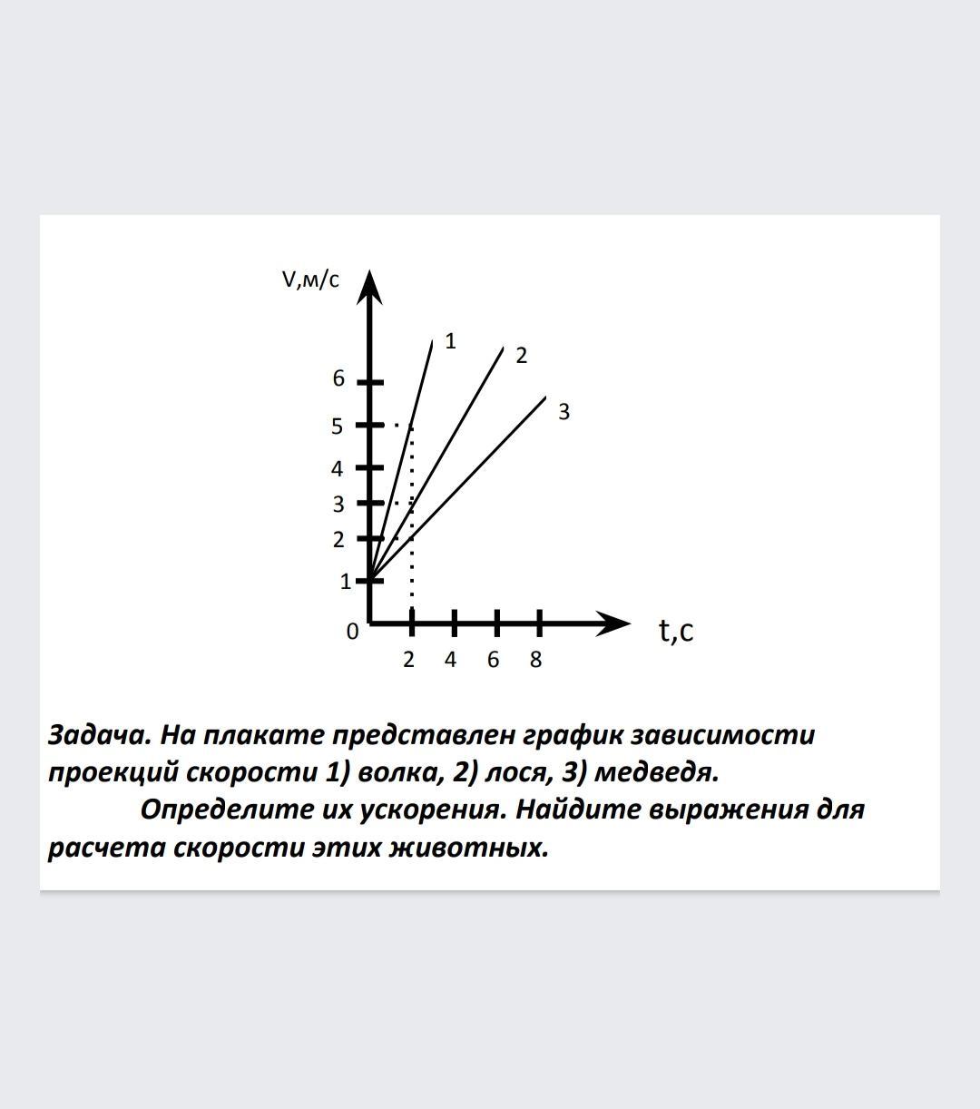 На плакате представлен график зависимости проекций скорости 1)волка 2)лося 3)медведя