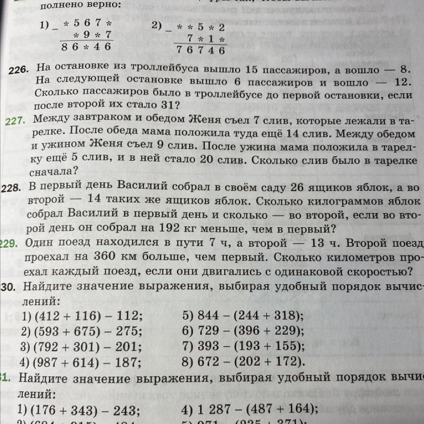 227. Между завтраком и обедом Женя съел 7 слив, которые лежали в та-