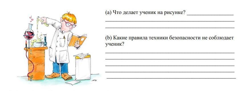 Ученик на рисунке смешивает реагенты чтобы получить реакцию.