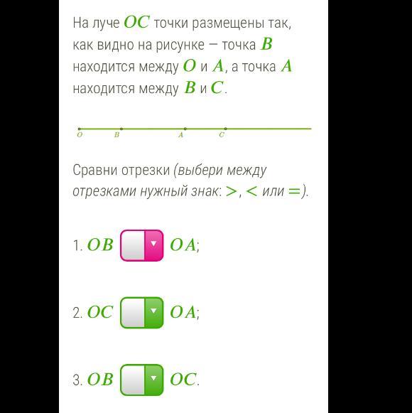 Сравни отрезки (выбери между отрезками нужный знак: >, < или =).