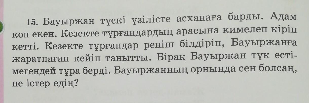 кешіріңіз, мен асығыс едім.Бауыржан сенде кезегінде тұр.Әділ болсаңшы.Жақсы кешіріңіздер-деп Бауыржан да кезекте тұрды