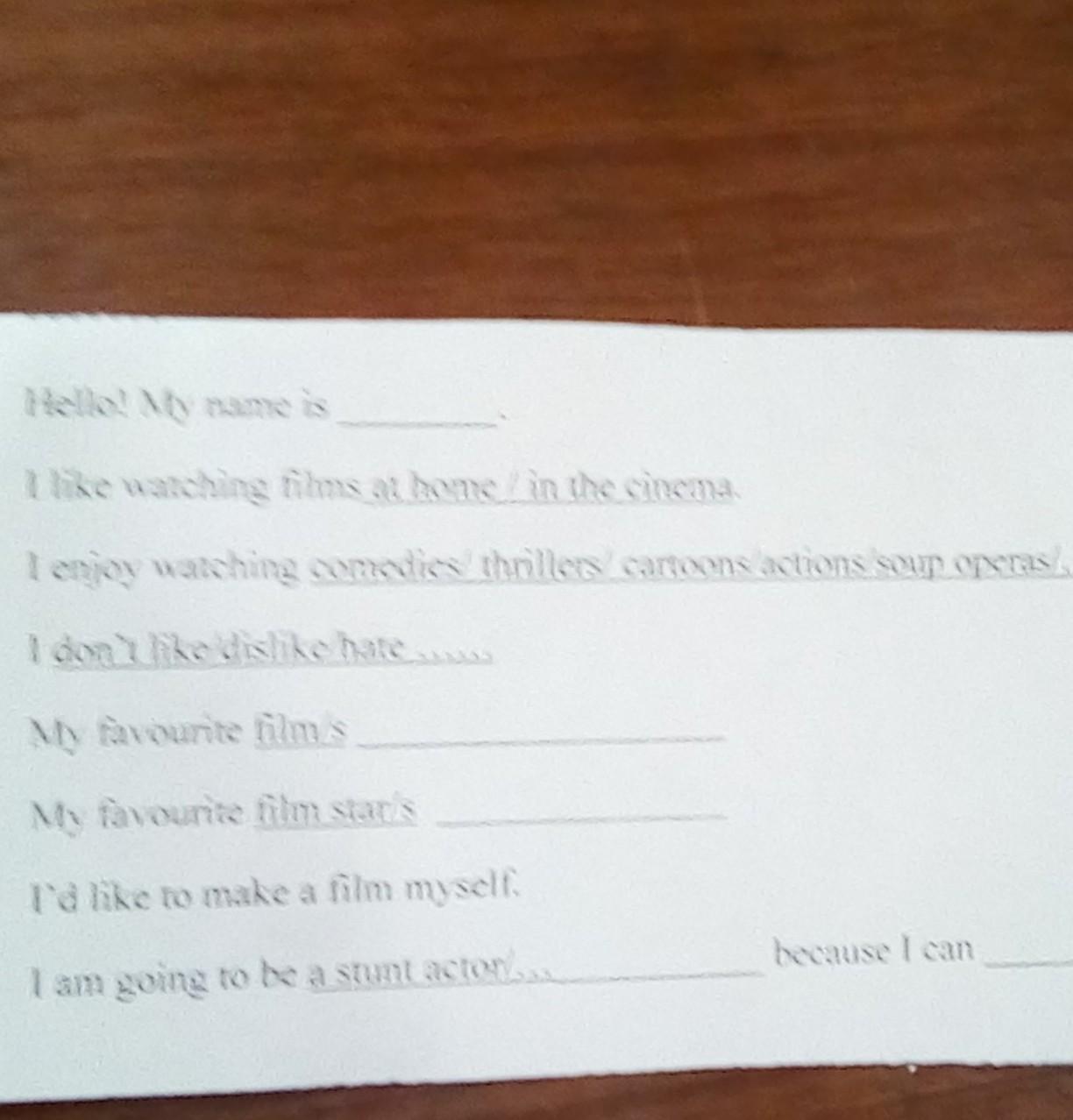 потом где ты любишь смотреть фильмы дома или в кино ( подчеркиваешь )