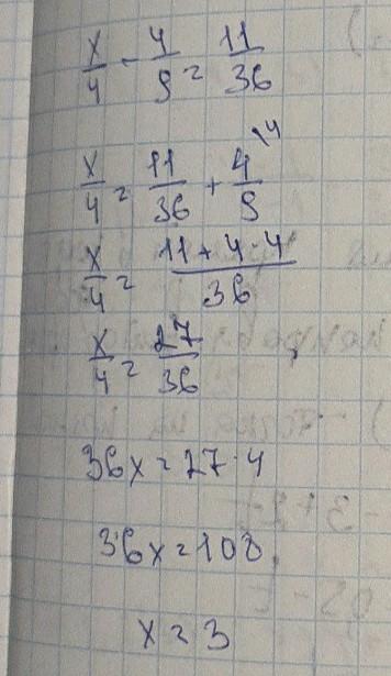 1) x/4-4/9=11/36