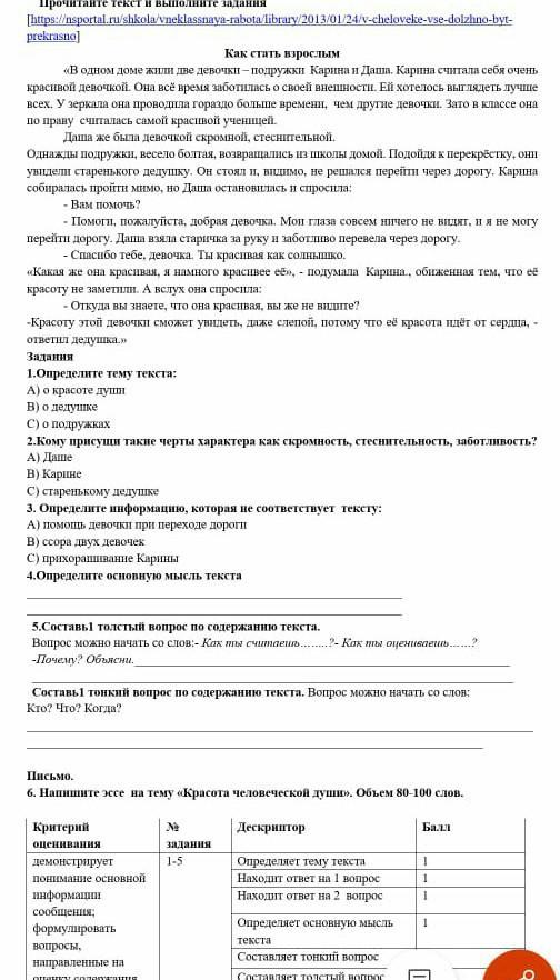 5. Как ты считаешь, послужили ли уроком для Карины слова дедушки?