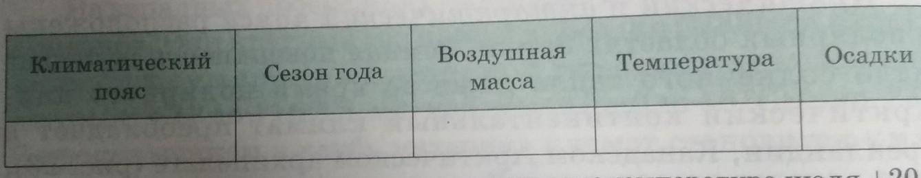 Срочно!!! Заполните таблицу «Климатические пояса Земли»: название климатического пояса, преобладающие воздушные массы, особенности климата (температура и осадки, режим осадков).