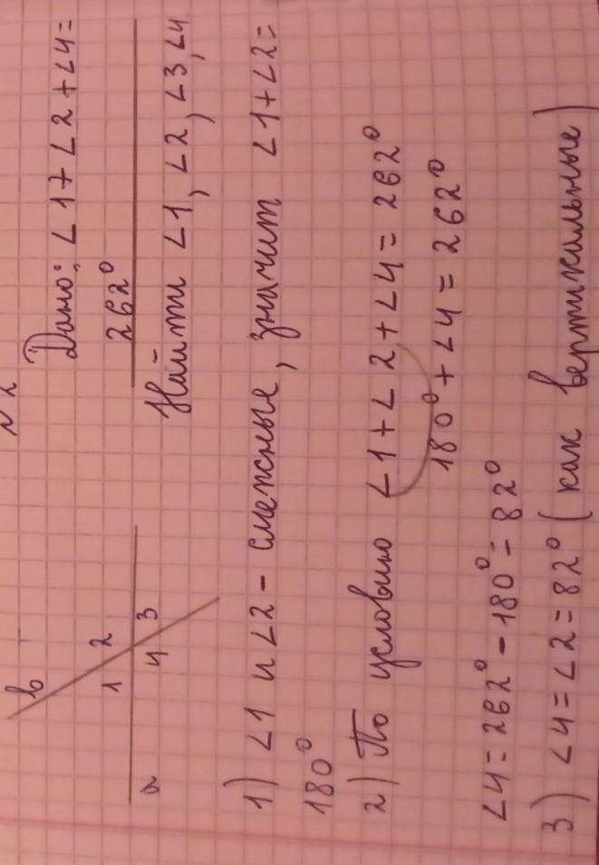 Значит угол 4 и угол 2 равны 82 градуса, а угол 1 и 3 равен 98 градусов?
