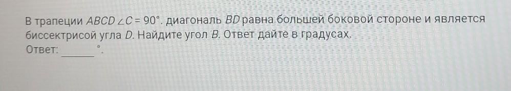 В трапеции ABCD C = 90°, диагональ BD равна большей боковой стороне и является