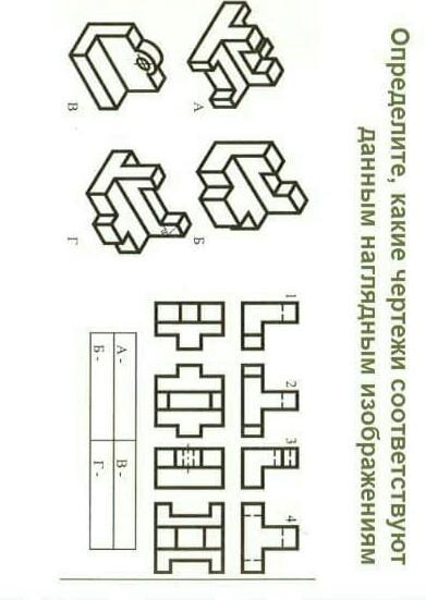 ОПРЕДЕЛИТЕ,какие чертежи соответствует данным наглядным изображение