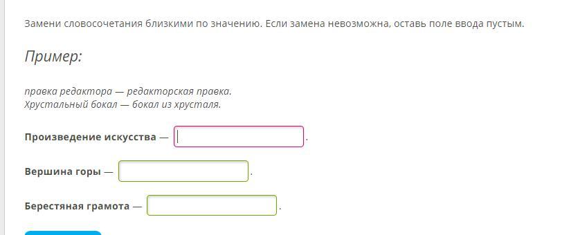 Искусное произведение; горная вершина; грамота из бересты.