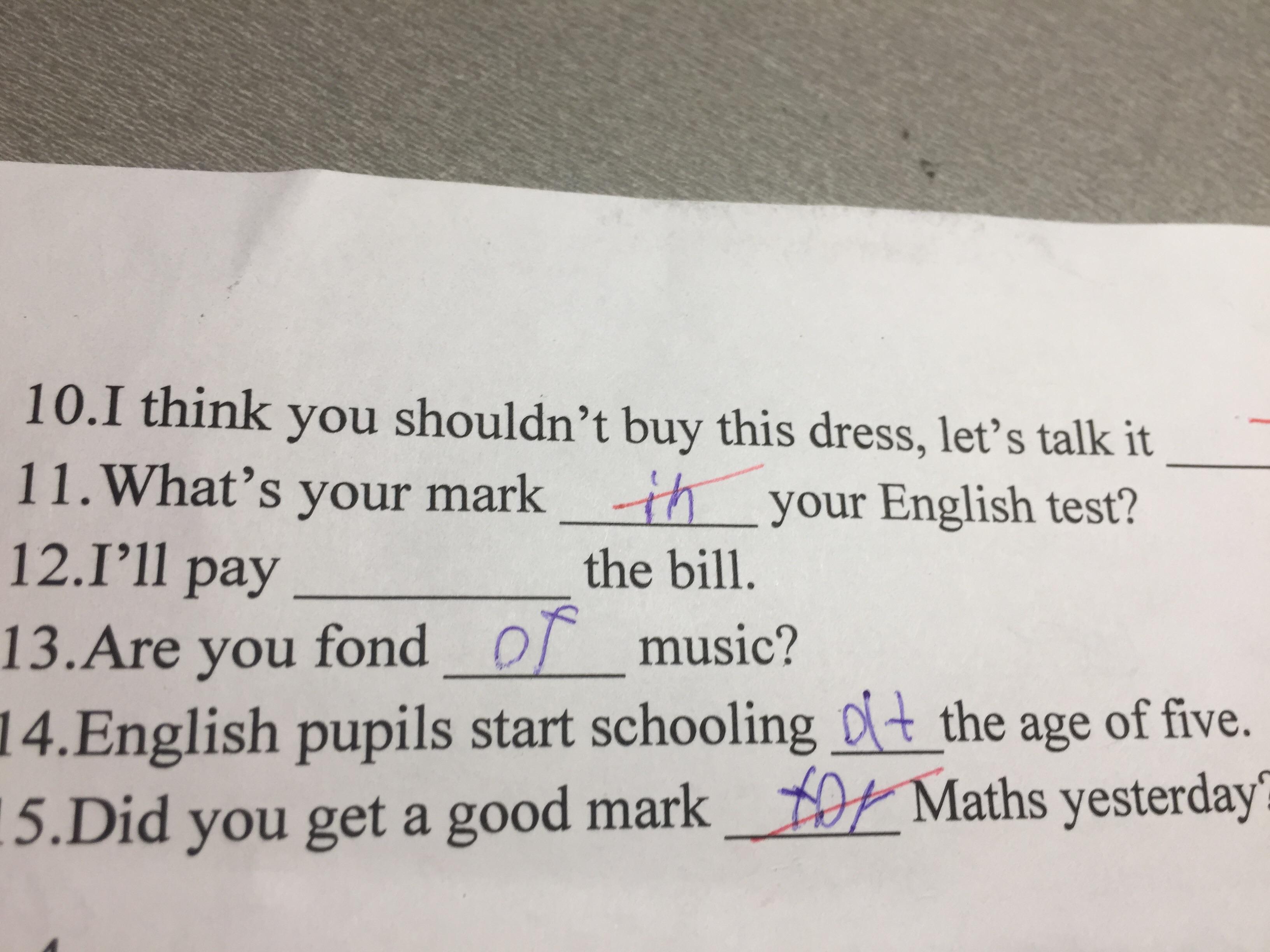 Какое предлог нужно вставить в Предложение What’s your mark______your English test ? Вариант in будет неправильным.