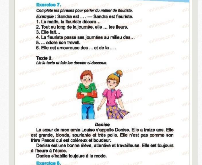 Sandra est fleuriste. Le matin la fleuriste decore la vitrine et le magasin. Tout au long de la journée elle soigne, arose et plante les fleurs. Elle fait des bouquets.