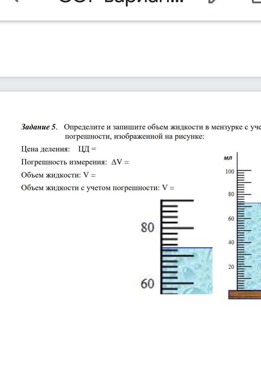 Объем жидкости с учетом погрешности V = ( 73 ± 1 ) мл