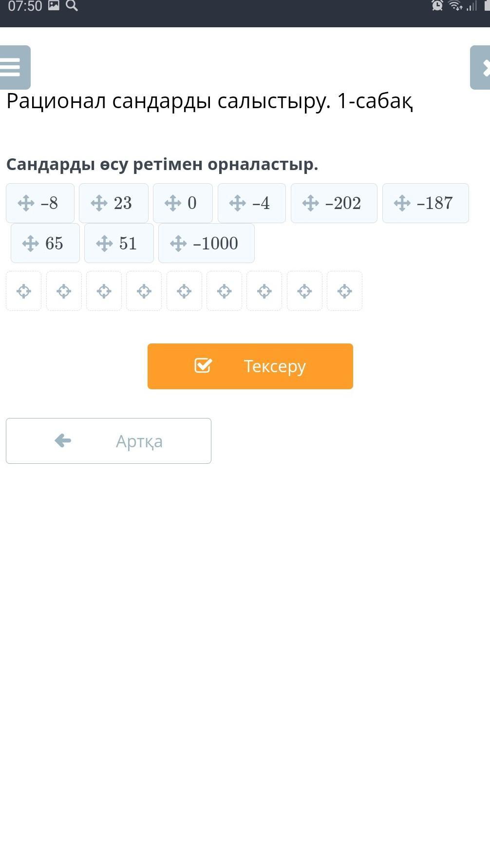 Ответ: - 1000, - 202, - 187, - 8, - 4, 0, 23, 51, 65