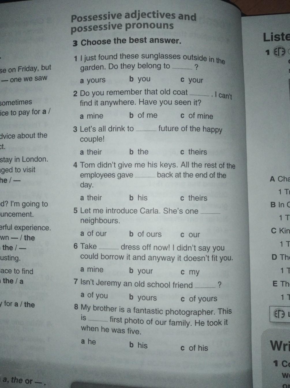 Ты ответил неправильно на первый вопрос. Если там не написано в конце допустим Mom или Dad значит это не your. Потому-что Do they belong to your? И где продолжение? Значит ответ будет другим. Если бы было в конце там допустим Mam то тогда бы был вариант C. (Я хотя-бы что-то помню) В следущий раз перепроверь на всякий случай.