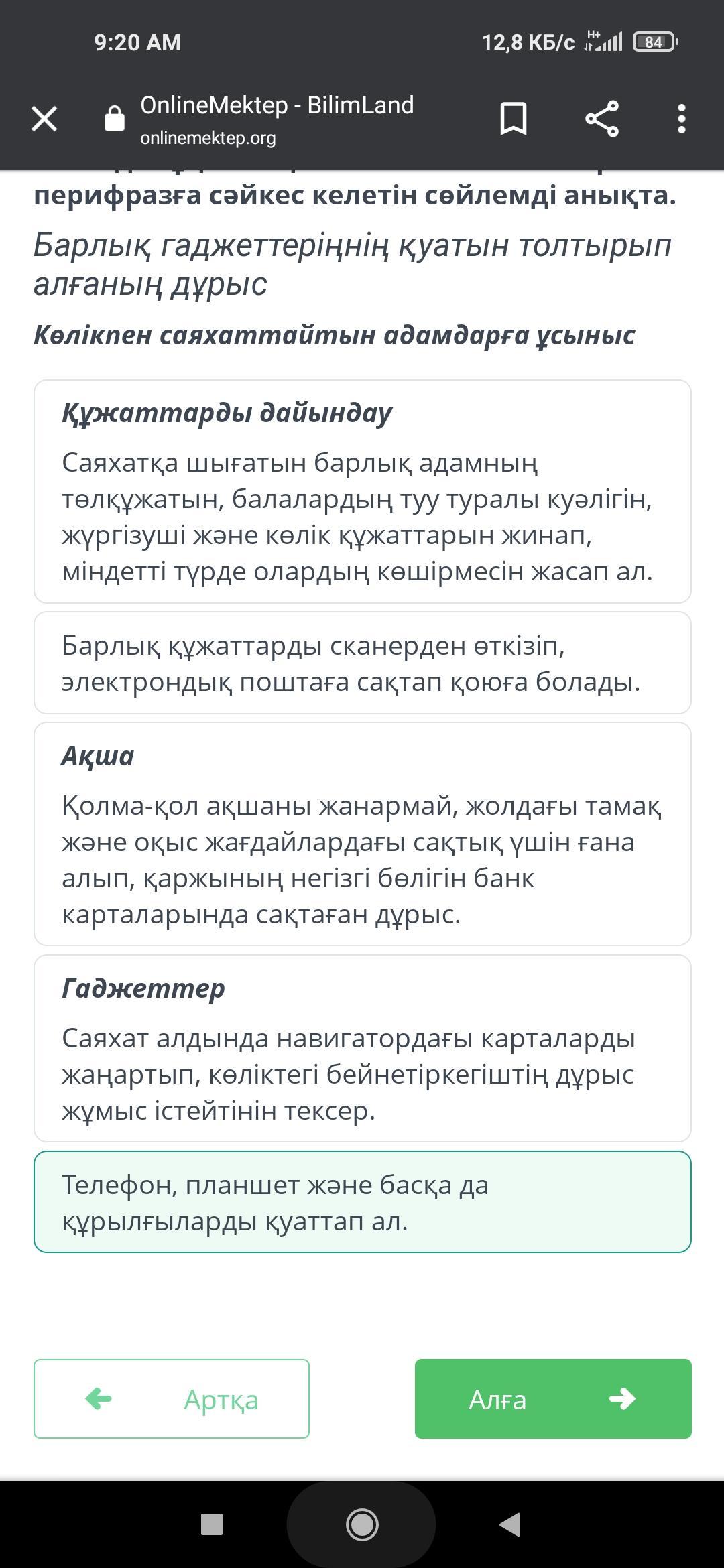 Мәтінді мұқият оқы. Мәтін бойынша берілген перифразға сәйкес келетін сөйлемді анықта.
