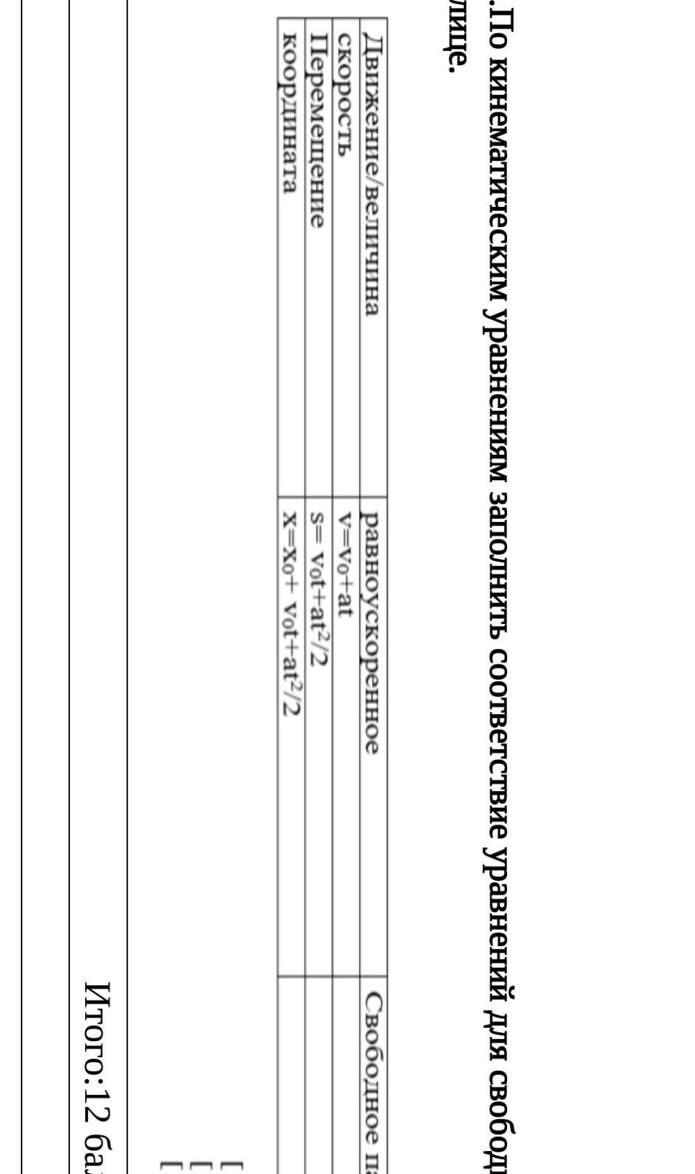 4.По кинематическим уравнениям заполнить соответствие уравнений для свободного падения в таблице