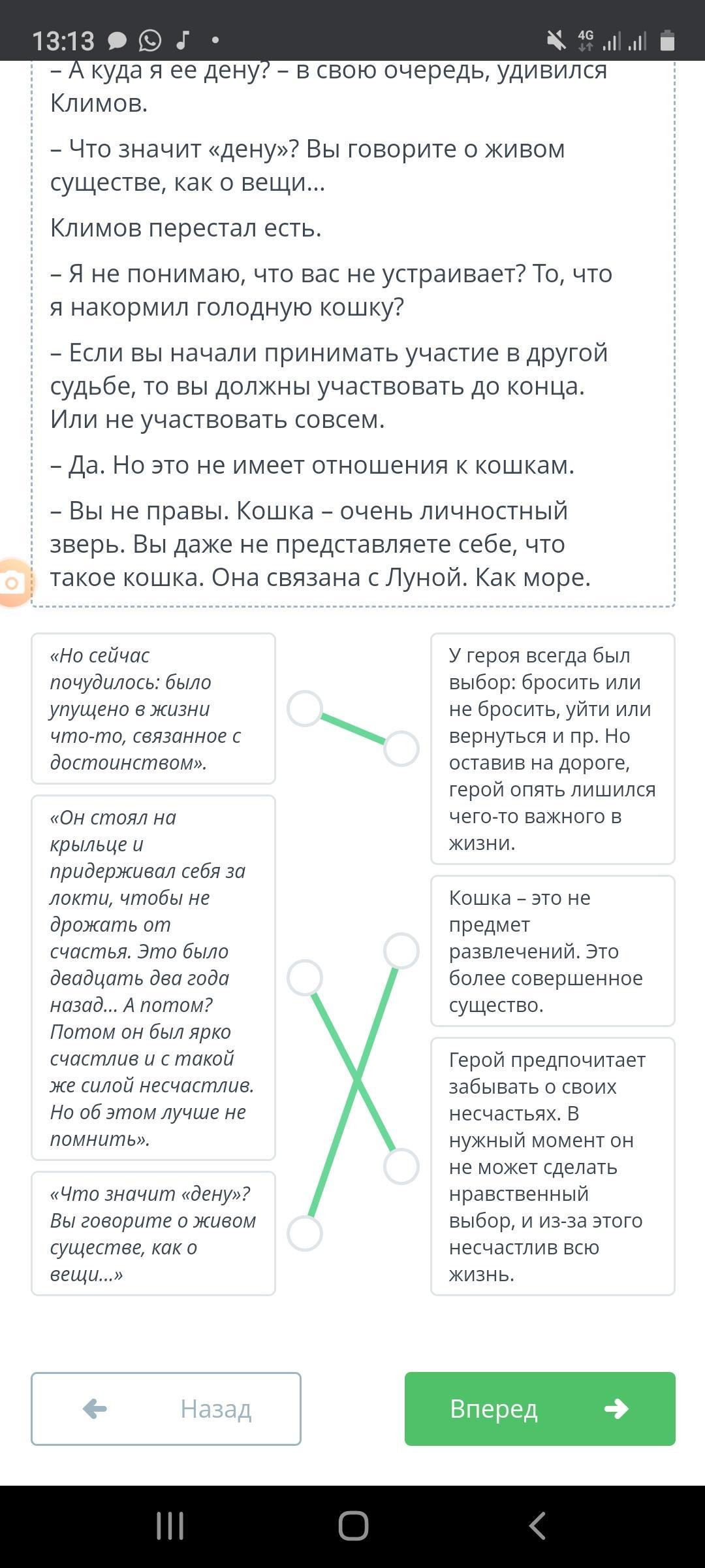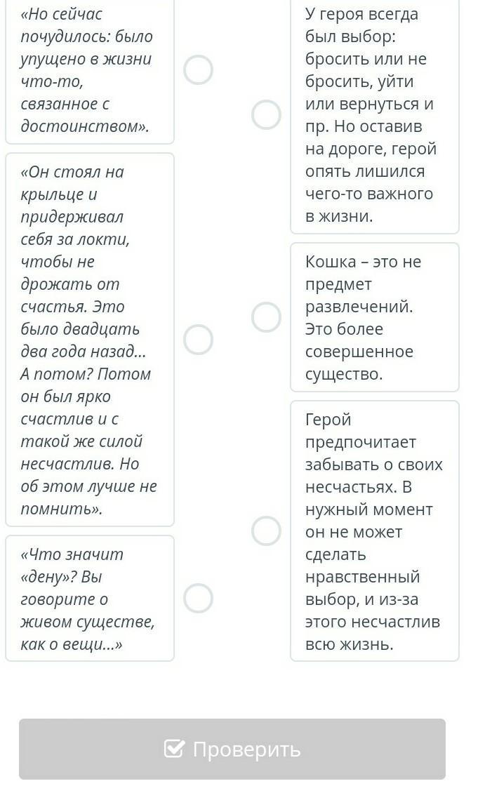 Прочитай рассказ В. Токаревой «Кошка на дороге» и соотнеси цитаты и утверждения по смыслу. пжж помогите провильно. Даю 17 балл