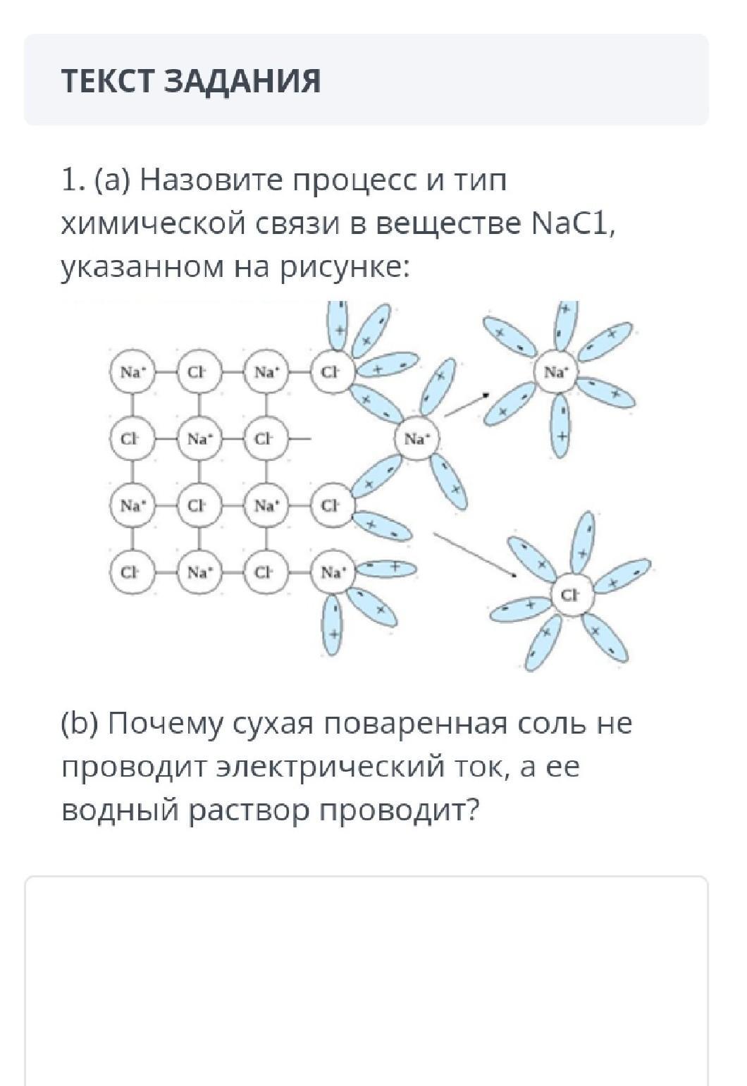 б)Если какой-либо раствор проводит электрический ток, значит в нем прослеживается движение ионов. В кристаллах поваренной соли ионы крепко связаны друг с другом и движения, после проведения электричества, не происходит.