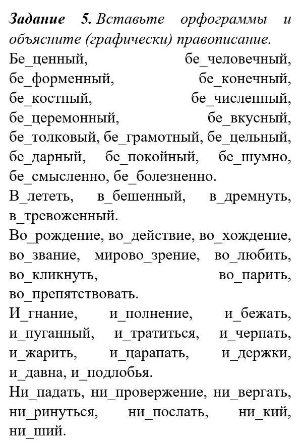 Бесценный, бесчеловечный, бесформенный, бесконечный, бескорыстный, бесчисленный, бесцеремонный, безвкусный, бестолковый, безграмотный, бесцельный, бездарный, беспокойный, бесшумно, бессмысленно, безболезненно. Взлететь, взбешенный, вздремнуть, встревоженный. Возрождение, воздействие, восхождение, воззвание, мировоззрение, возлюбить, воскликнуть, воспарить, воспрепятствовать. Изгнание, исполнение, избежать, испуганный, истратить, исчерпать, изжарить, исцарапать, издержки, издавна, исподлобья. Ниспадать, ниспровержение, низвергаться, низринуться, ниспослать, низкий, низший.
