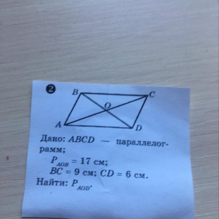 т.к. BO=OD и ABCD - параллелограмм: P(AOD)=17-6+9=20см