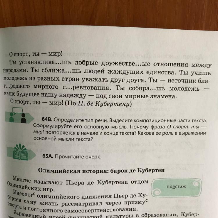 Упражнение 64 В. Определи тип речи. Выдели композиционные части текста. Сформулируй его основную мысль