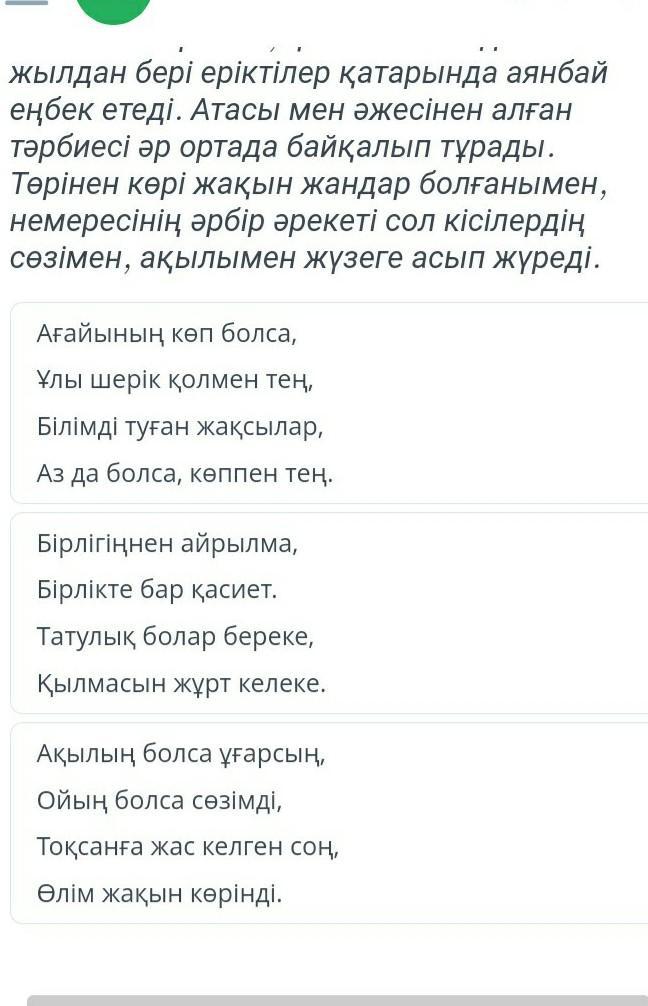 Жансая – мұғалім, қоғам белсендісі. Көп жылдан бері еріктілер қатарында аянбай еңбек етеді. Атасы мен әжесінен алған тәрбиесі әр ортада байқалып тұрады. Төрінен көрі жақын жандар болғанымен, немересінің әрбір әрекеті сол кісілердің сөзімен, ақылымен жүзеге асып жүреді.