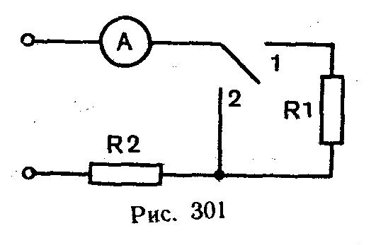 амперметр показывает силу тока 1 А, а в положении 2 - силу тока 4 А.