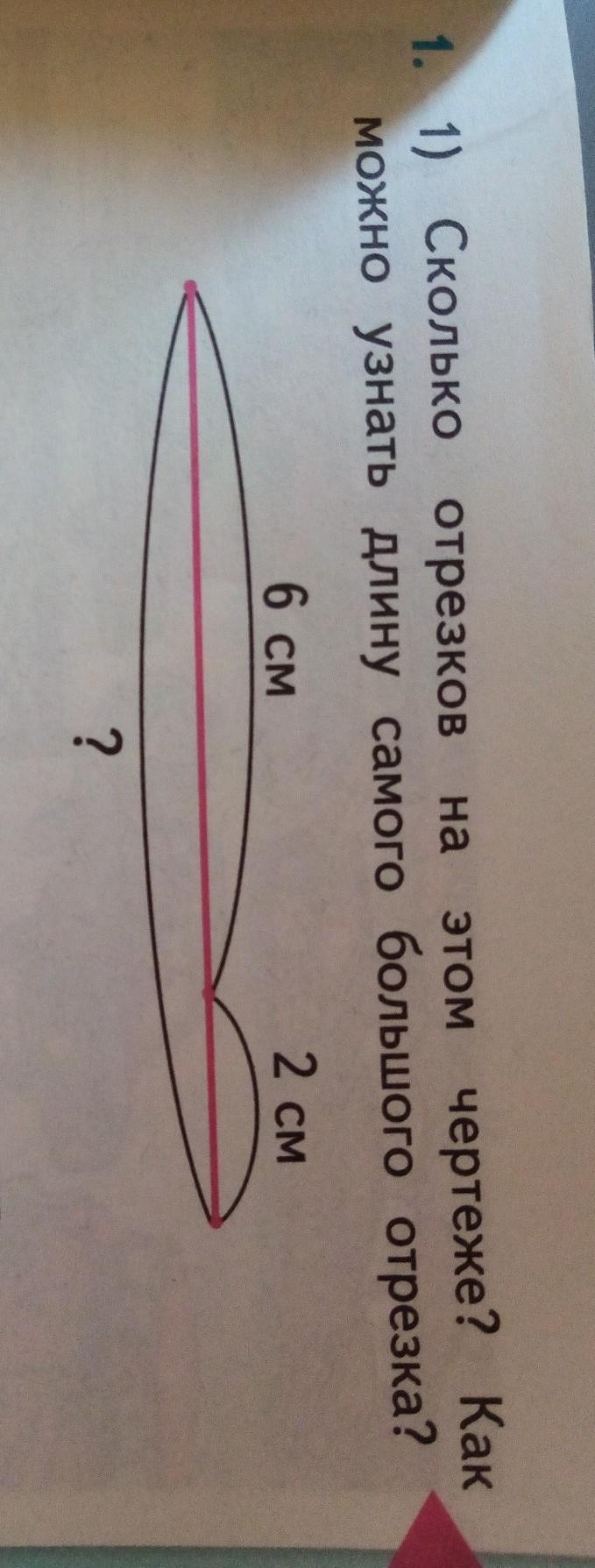 На чертеже 2 отрезка. Длину самого большого можно узнать, сложив отрезки и отняв от нее длину маленького отрезка: