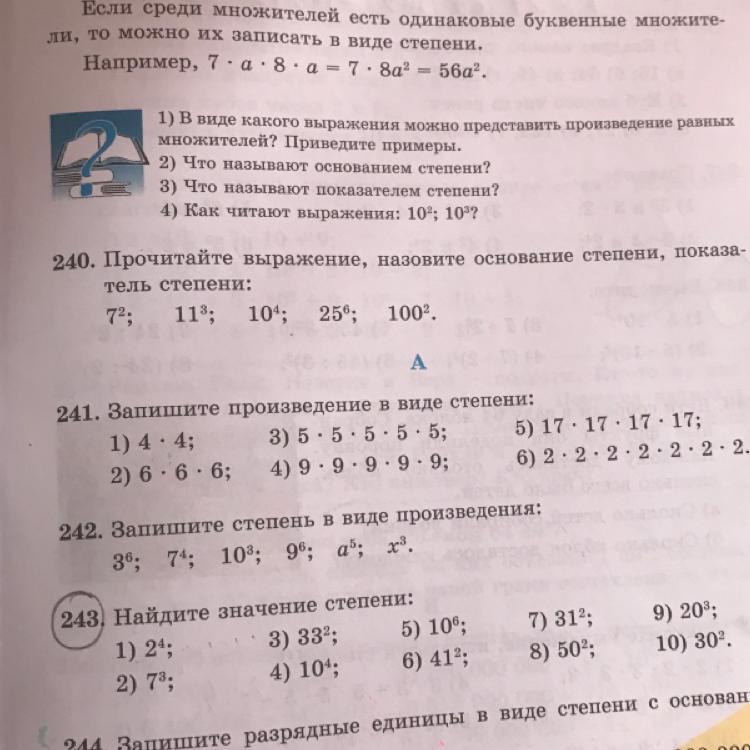 Ответ:1)4 во 2 степени 2)6 в 3 степени 3)5 в 5 степени 4)9 в 5 степени 5)17 в 4 степени 6)2 в 7 степени