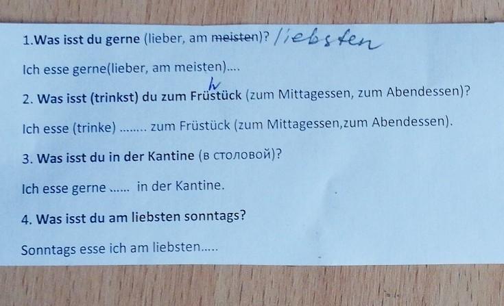 Ich esse gerne Fisch, Fleisch esse ich lieber, Pizza esse ich am liebsten.