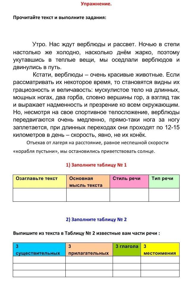 Выпишите из текста в Таблицу № 2 известные вам части речи :