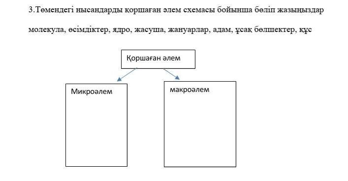 Извени на Казахском не понимаю но могу сказать что БОЛЬШИЕ ПРЕДМЕТЫ идутв левый столбик а маленькие (Бактерии,клетки) в правый столбик