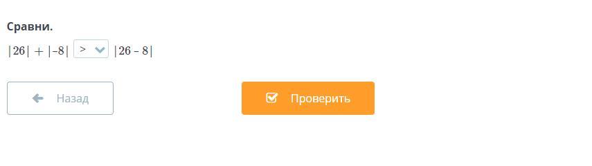 Так как эти числа в модулях, мы эти модули раскрываем и получается такое выражение "26 + 8 ? 26 - 8"