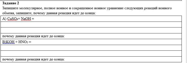 Запишите молекулярное, полное ионное и сокращенное ионное уравнение следующих реакций ионного обмена, запишите, почему данная реакция идет до конца: