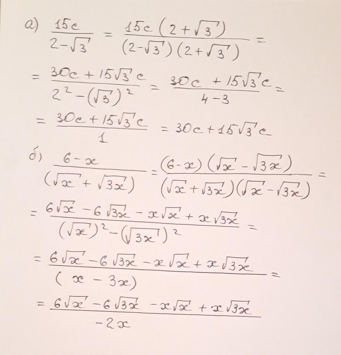 а) ( 15c )/( 2 -√3 ) б) ( 6-x )/( √х +√3x)